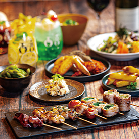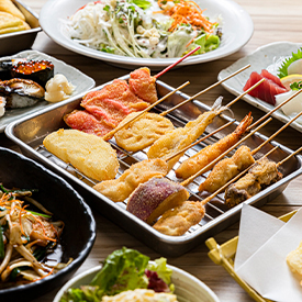 野菜巻き串と焼鳥を中心に70品以上のこだわりメニューが揃う串焼き居酒屋