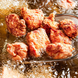 国産若鶏100%使用!鶏肉は店内仕込みで、中津しょうゆ使用のこだわり秘伝ダレを百回以上揉み込み、じっくり寝かせています。注文ごとに粉をまぶして揚げる「できたて」「熱々」の唐揚げを提供します。